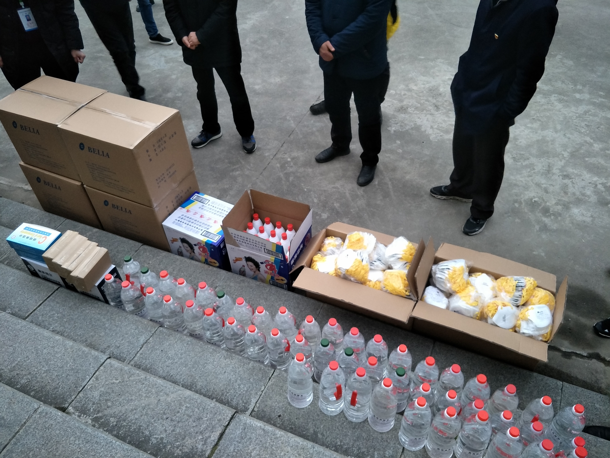 此次捐贈(zèng)物資共計(jì)普通口罩10000個(gè)、N95口罩2000個(gè)、酒精50瓶、消毒液40瓶、手套100雙、水銀溫度計(jì)200支、體溫槍4把。