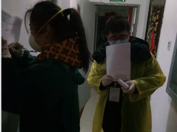 徐浩瀚全副武裝準(zhǔn)備進(jìn)入確診單元消毒