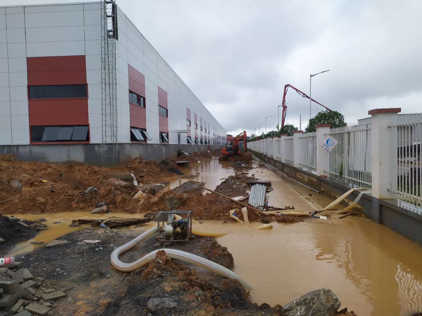 在赤壁高新區(qū)新材料產(chǎn)業(yè)園的貴明中伸、湛藍(lán)科技等重點(diǎn)企業(yè),赤壁城發(fā)集團(tuán)防汛專班指導(dǎo)企業(yè)制定應(yīng)急預(yù)案,備好防汛排澇物資;組織10名勞力,協(xié)調(diào)抽水泵等抗洪搶險(xiǎn)機(jī)械5臺(tái),為企業(yè)鋪設(shè)排水管道300米,疏通排水管網(wǎng)200米,及時(shí)將該園區(qū)積水排出,為企解憂。
