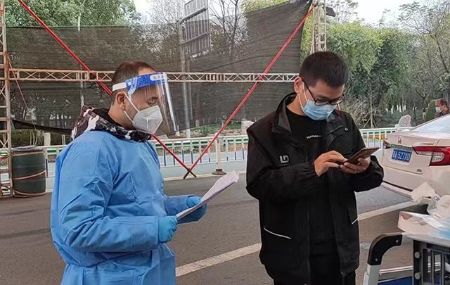 “請(qǐng)出示健康碼和行程卡”、“請(qǐng)問(wèn)您是從哪里過(guò)來(lái)的”、“請(qǐng)掃一下場(chǎng)所碼”……戴上口罩和手套,穿上防護(hù)服,一個(gè)笑臉,一聲問(wèn)候,檢查入赤車(chē)輛司乘人員的健康碼、行程卡,這是近期赤壁G4京港澳高速赤壁站(齋公嶺)高速路口,赤壁城發(fā)集團(tuán)一線防疫人員,24小時(shí)值班值守的真實(shí)寫(xiě)照。