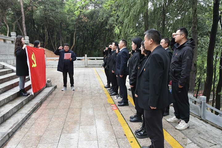 在莊嚴(yán)肅穆的烈士紀(jì)念碑前,黨員干部們肅立默哀,向長(zhǎng)眠于此的革命烈士敬獻(xiàn)鮮花,并集體重溫入黨誓詞,向革命先烈做出莊嚴(yán)承諾。