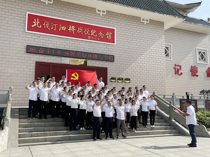 步入汀泗北伐紀(jì)念館,全體黨員干部神情肅穆,莊嚴(yán)宣誓,重溫入黨誓詞,在館內(nèi)深入了解北伐戰(zhàn)爭汀泗橋戰(zhàn)役,追憶紅色歷史,感悟初心使命。