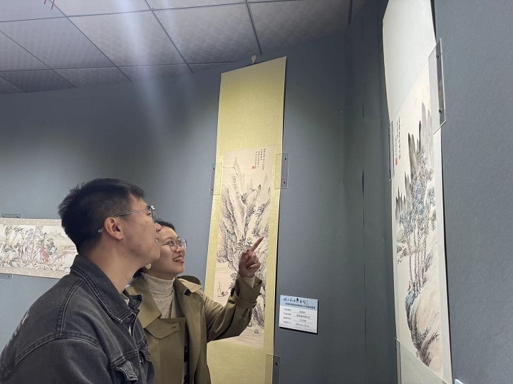 本次書畫展展出賀良樸作品約100件,其他賀氏五代參展作品約50件,既有賀良樸代表作《江山秋霽圖》,也有賀良樸嫡孫賀偉國創(chuàng)作的《赤壁攬勝圖》《赤壁陸水湖》等,藝術(shù)精湛、風(fēng)格多樣,透射出國畫的美學(xué)趣味、文化精神和時代氣息,為大家?guī)硪粓鑫幕囆g(shù)盛宴。展廳中央的17.08米精品長卷《江山秋霽圖》引得大家贊嘆不已,紛紛駐足觀看,分享交流。