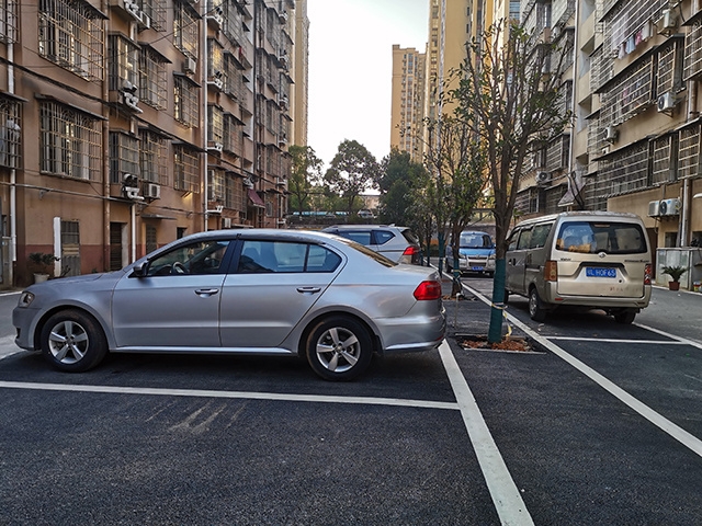 12月21日下午,筆者在該小區(qū)看見,地面全部刷黑,小轎車有序地停在規(guī)定的停車位里,環(huán)境整潔。