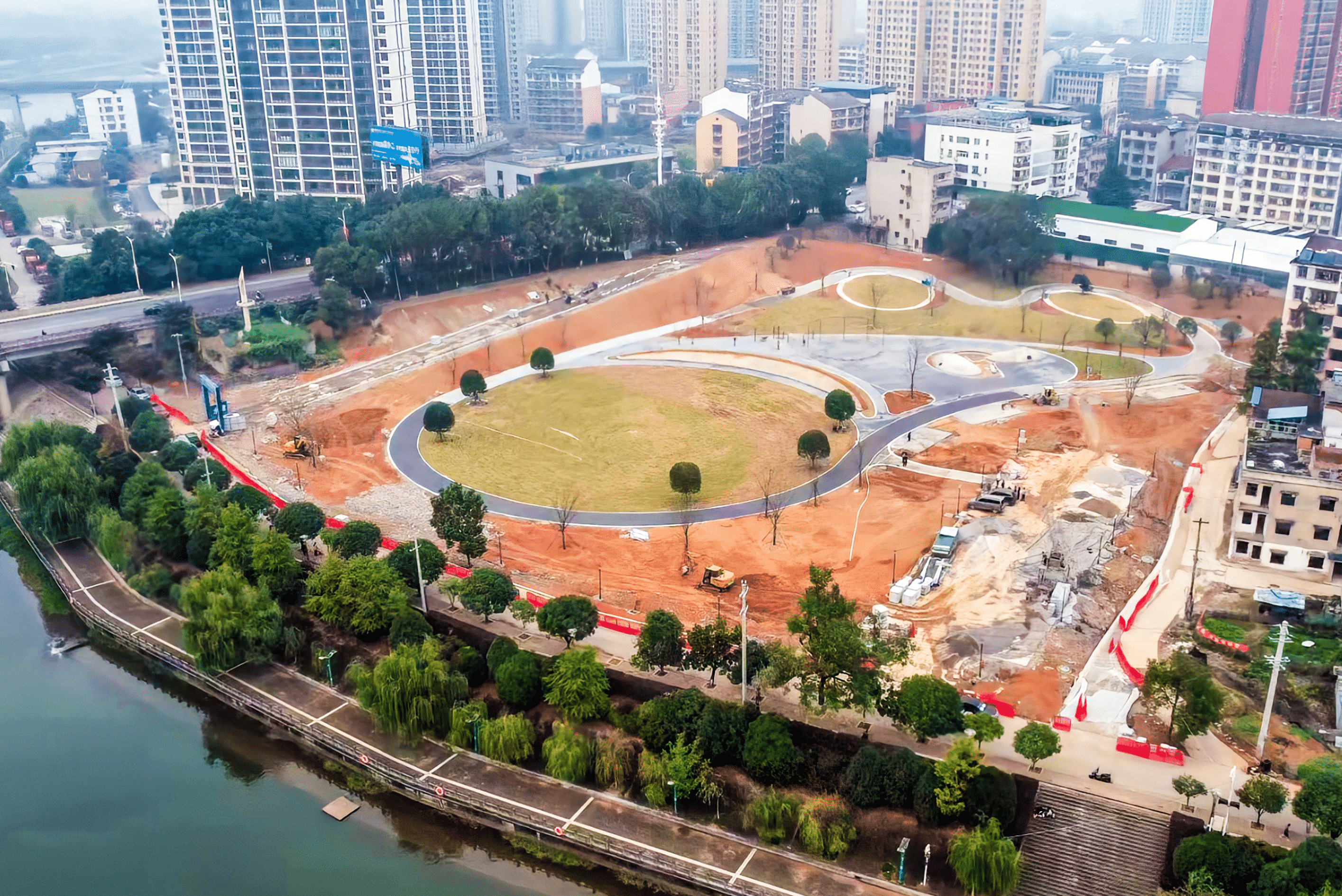 該公園位于陸水二橋旁,曾經(jīng)是一處“城中村”,私搭亂建、污水橫流現(xiàn)象嚴重。經(jīng)棚改拆除后,該地成為一塊閑置地塊,主要堆放建筑垃圾,甚至有居民在這里開荒種菜,成為城市的一塊“傷疤”。