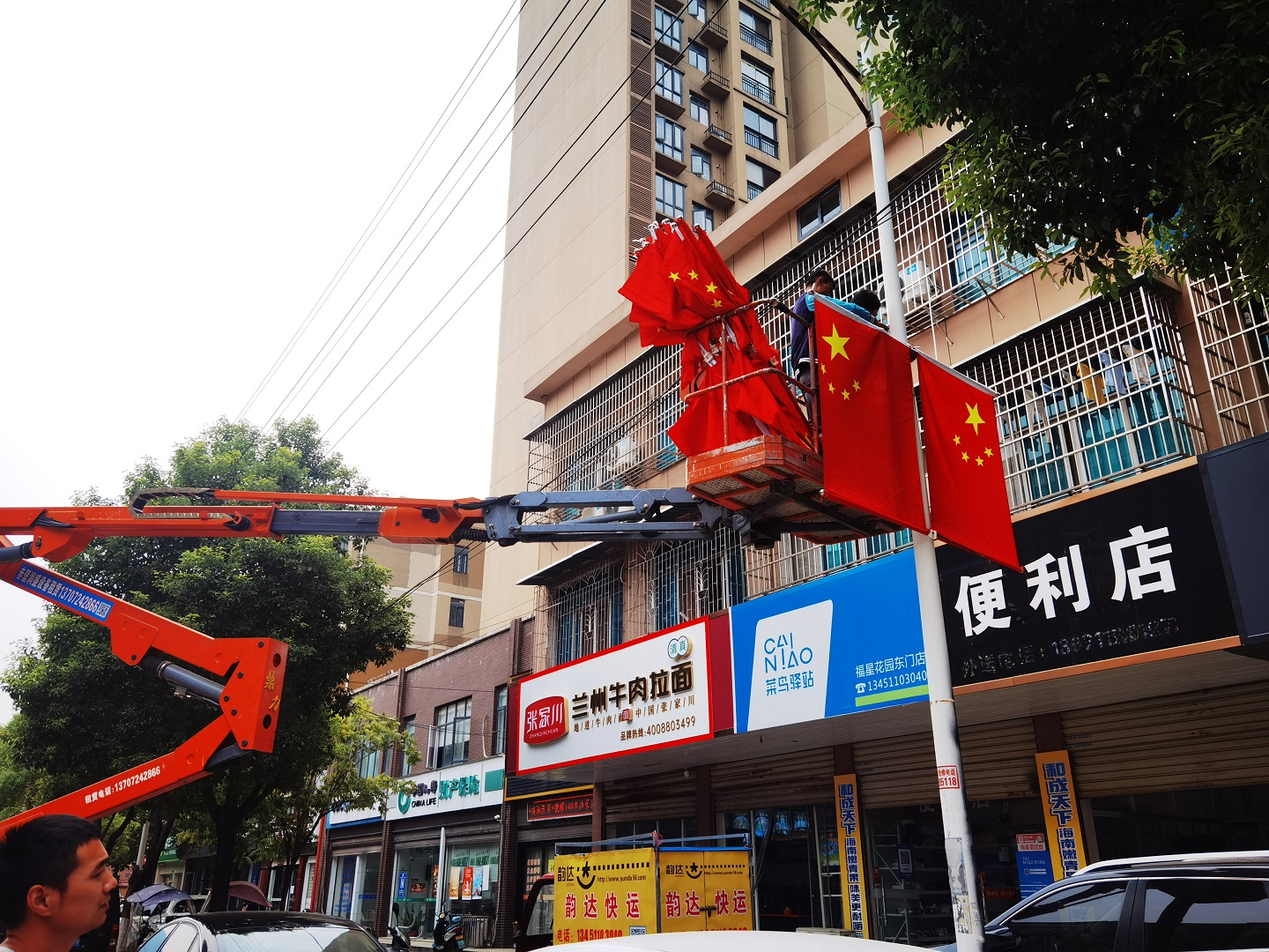 9月29日,赤壁城發(fā)集團(tuán)廣告公司正在進(jìn)行國旗懸掛工作,一面面鮮艷的五星紅旗整齊劃一,與藍(lán)天綠樹交相輝映,營造出喜慶祥和的國慶節(jié)日氛圍。