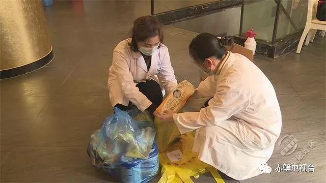 丁蒲麗(左一)在打包隔離點(diǎn)人員物資