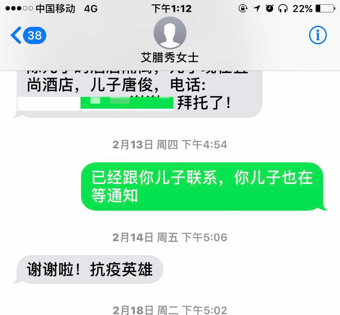 隔離人員感謝短信