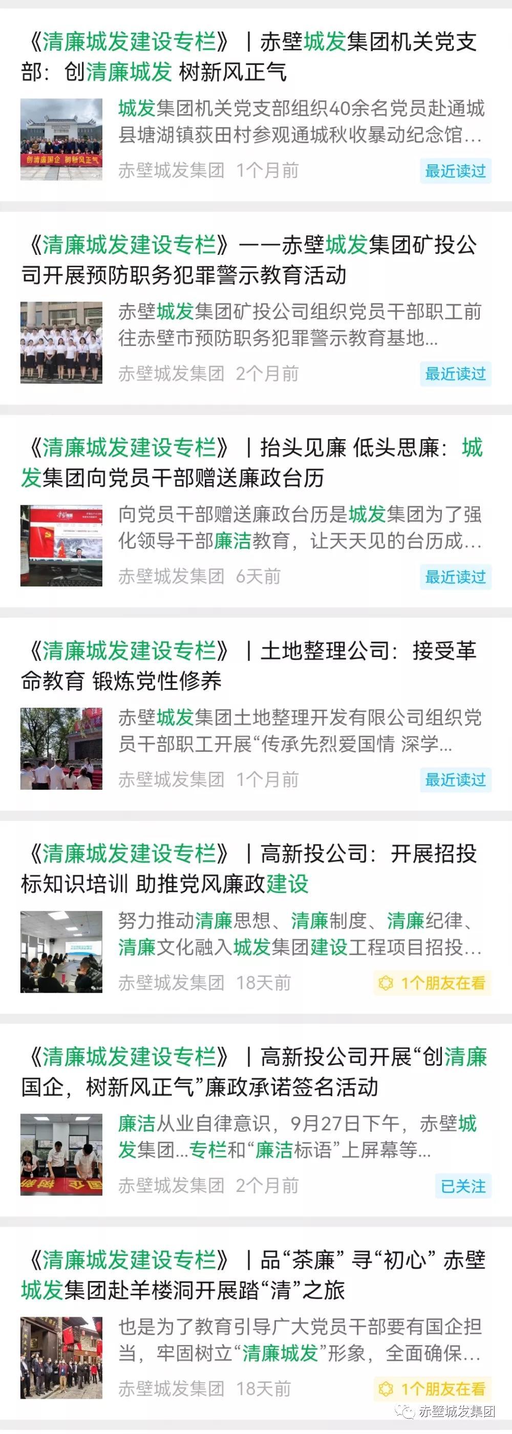 緊接著,城發(fā)集團(tuán)微信公眾號(hào)同步開(kāi)辟了“清廉城發(fā)建設(shè)專欄”;